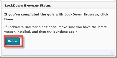 8. Click Done to close the Status window to close LockDown Browser and return your computer to its normal functioning.