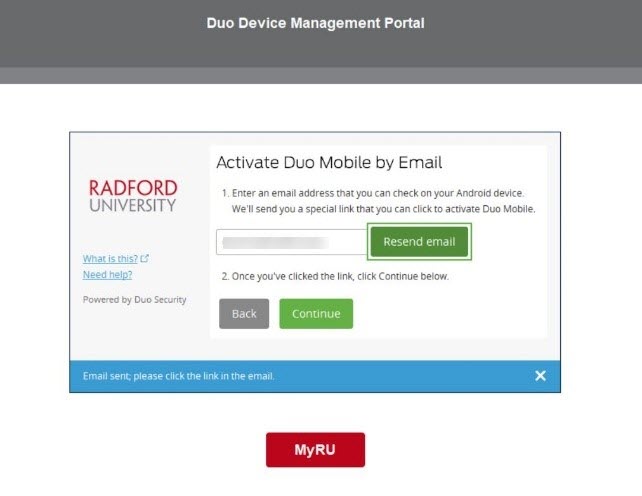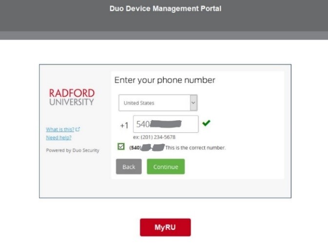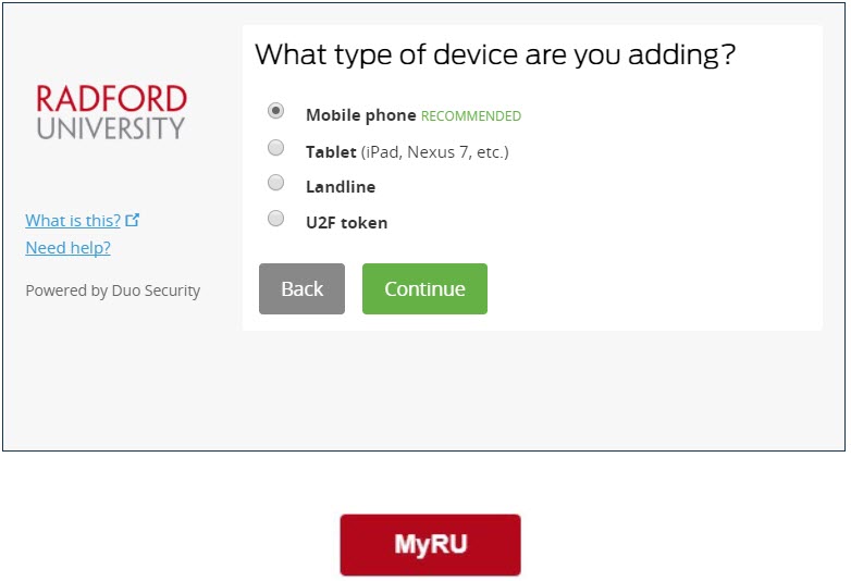 NOTE: Clicking on MyRU will exit the Duo Device Management Portal and return you to the MyRU portal. You will still be required to complete the setup before your next MyRU login.