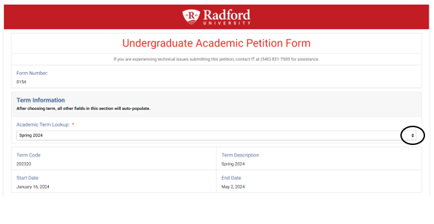 Note: If there are any issues with submitting the academic petition, contact IT for assistance at (540) 831-7500.