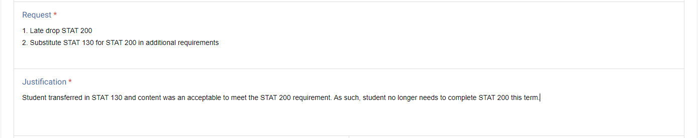 Type the request and justification. If multiple items are being petitioned, consider numbering the items.